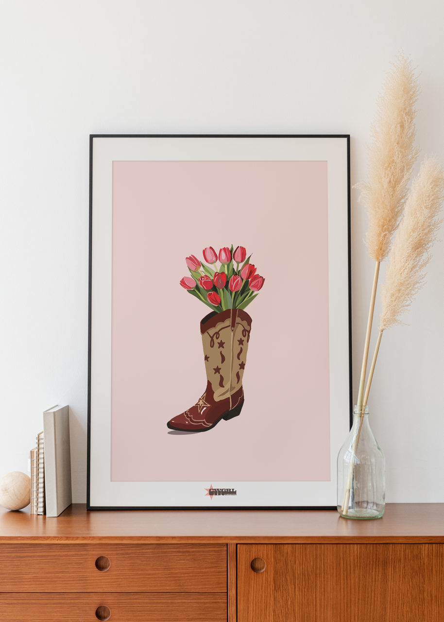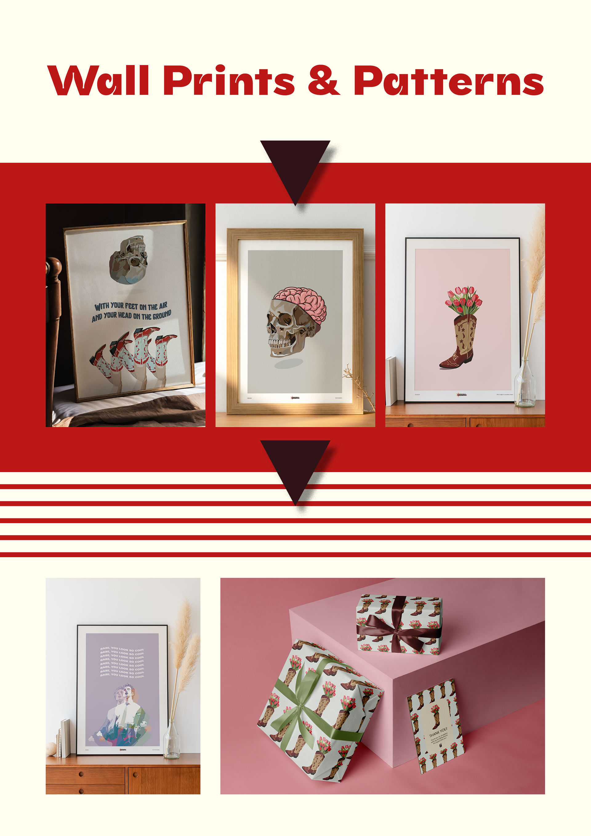A limited edition collection of wall prints and wrapping paper sold on Etsy under the brand 'Cowgirl Creative'.