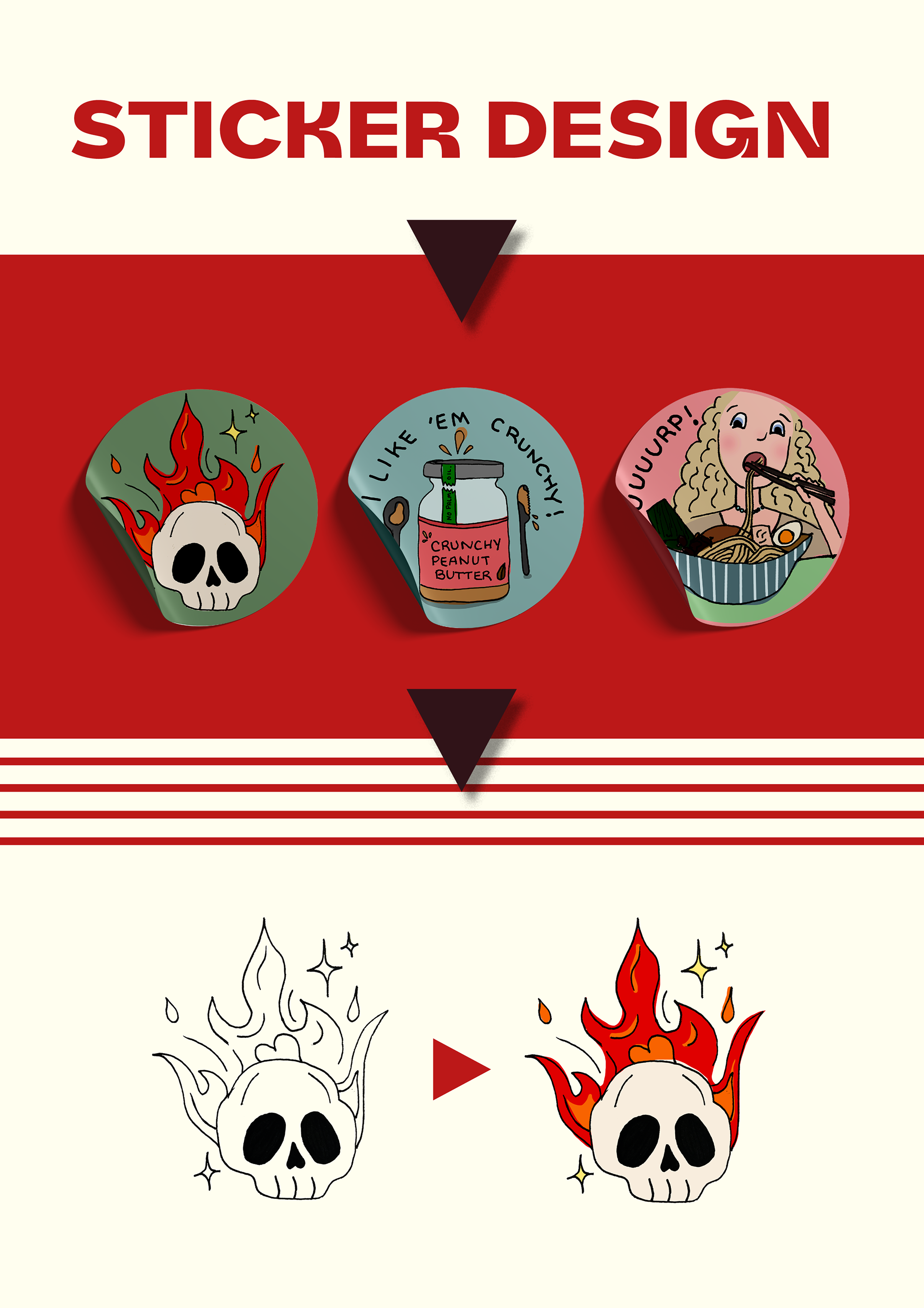 Playful foodie stickers in an unfinished sketch style to echo a comforting homemade dish!