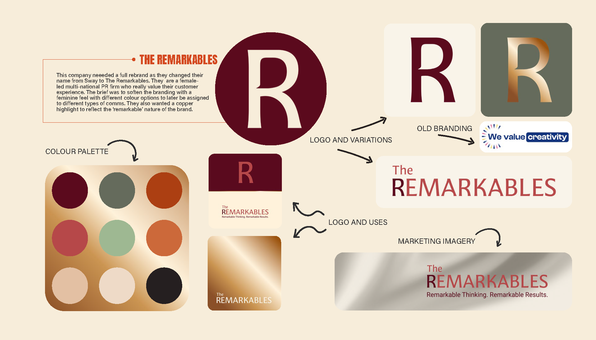 Complete rebrand of a successful PR company, formally Sway, now 'The Remarkables'. See their website here: www.the-remarkables.com